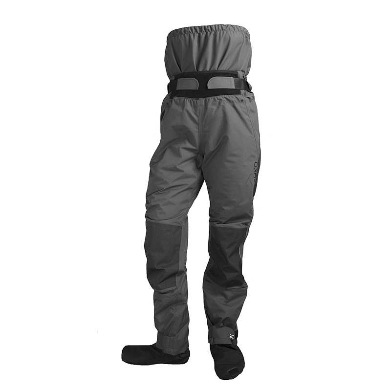 Dámské kalhoty vyrobeny ze čtyřvrstvého prodyšného materiálu. Dvojitý pas je vybaven lehce dotahovatelným systémem, který zabraňuje proniknutí vody. Střihově jsou kalhoty přizpůsobeny pro sezení v kajaku. Exponovaná místa jsou zesílena jako ochrana proti prodření. Pro větší pohodlí vašich nohou jsou kalhoty vybaveny cordurovými vodotěsnými ponožkami.